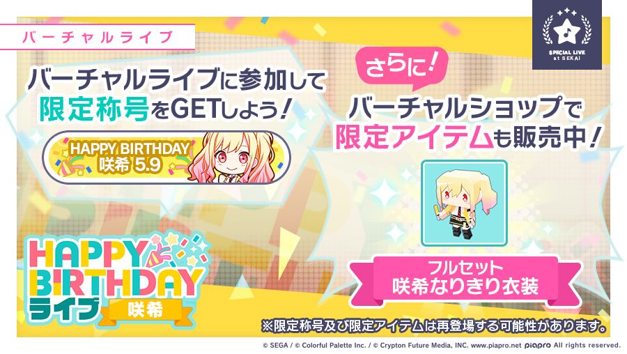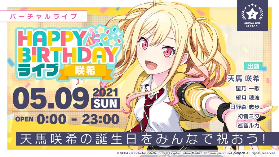 北京时间5月8日23:00起举办「HAPPY BIRTHDAY LIVE 咲希」虚拟演唱会🎂