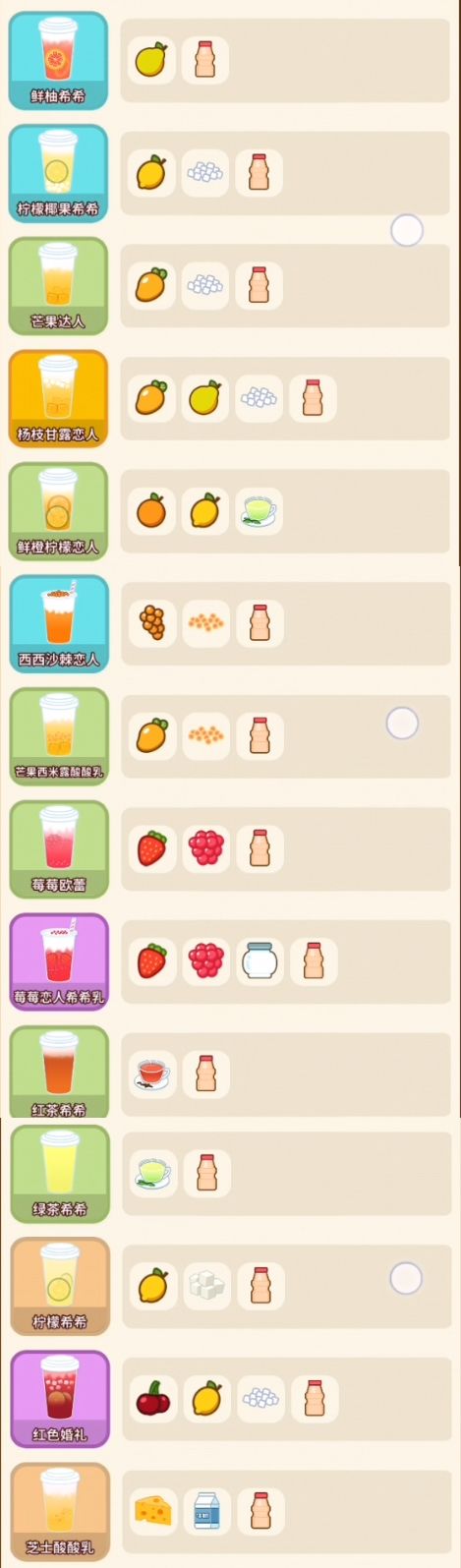 按图鉴顺序,一张图一个奶茶分类。不知道能不能看清。