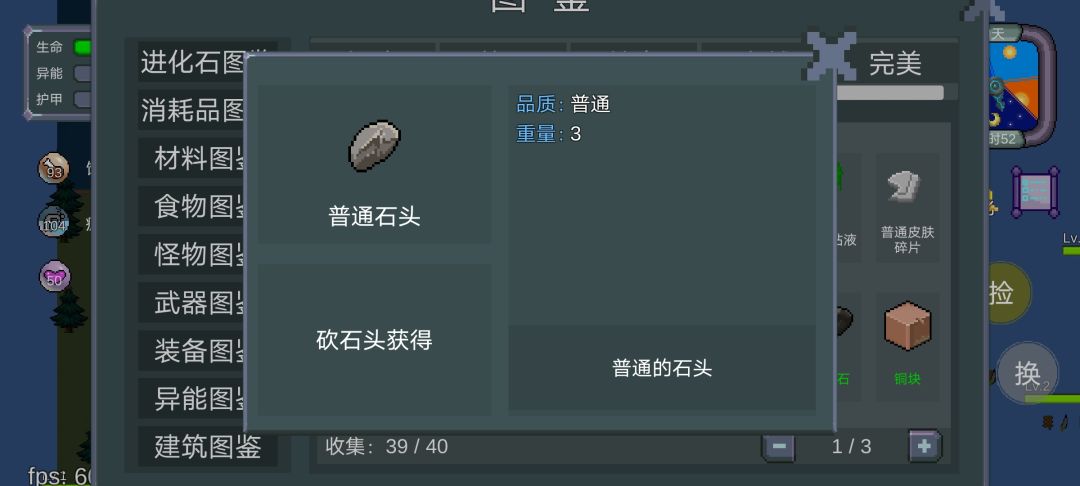 砍石头获得普通石头