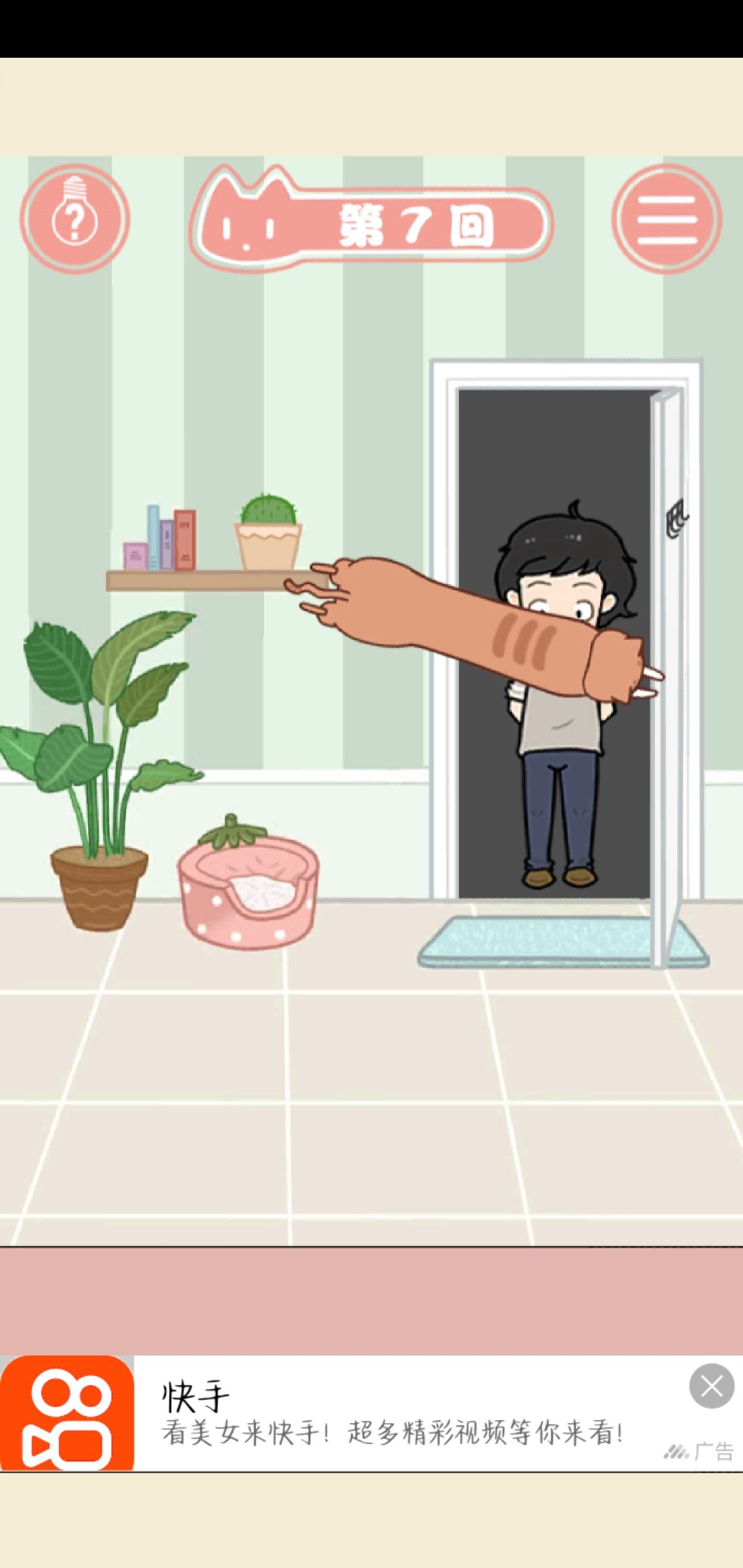 挺简单的一个藏猫猫小游戏。猫猫其实长得没有很可爱,但是猫猫有时候的动作还是戳在了我的萌点。最后一关!居然舔舔都不能把铲屎官舔起来!临幸铲屎官还呼呼睡大觉quq
