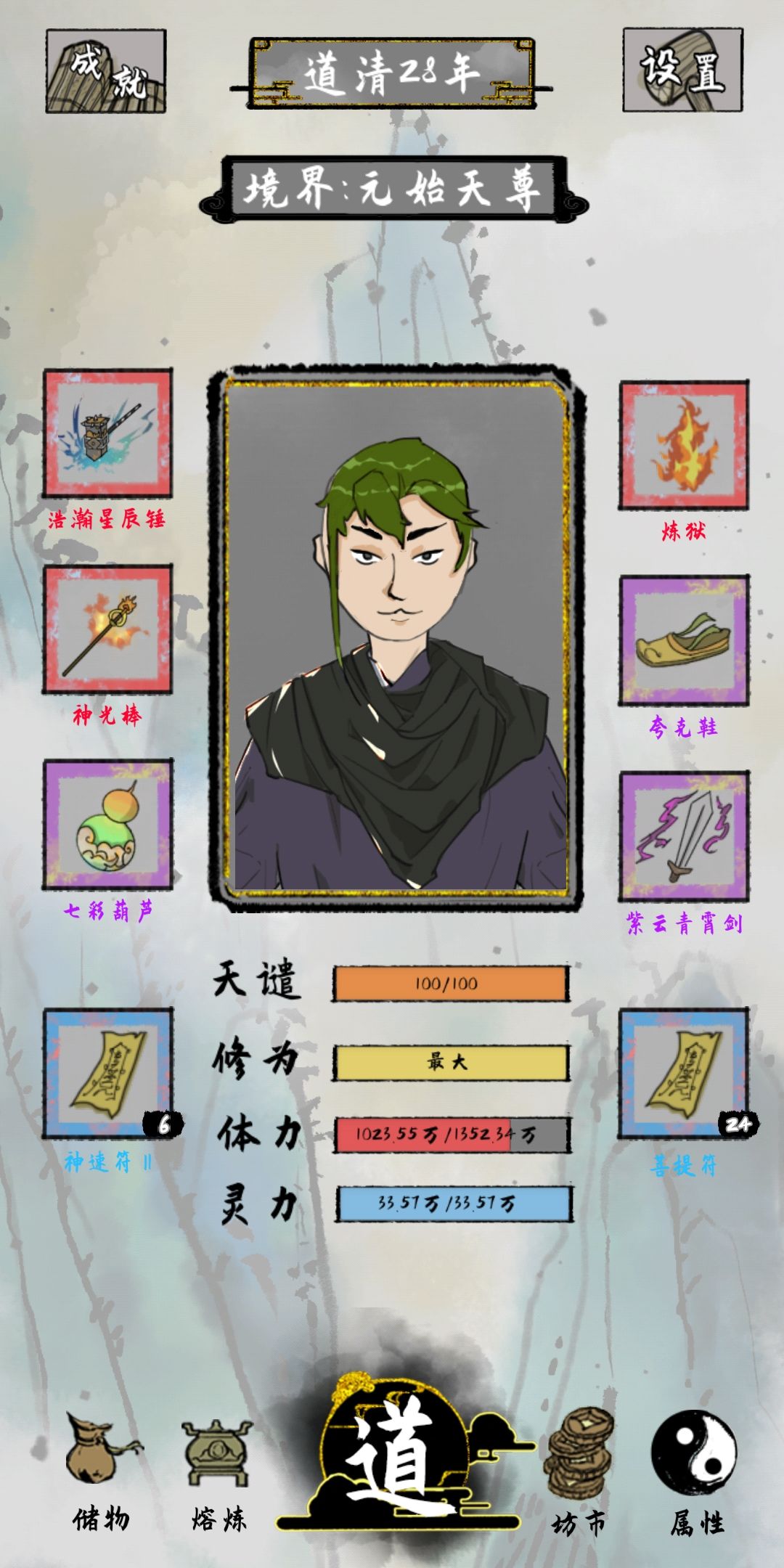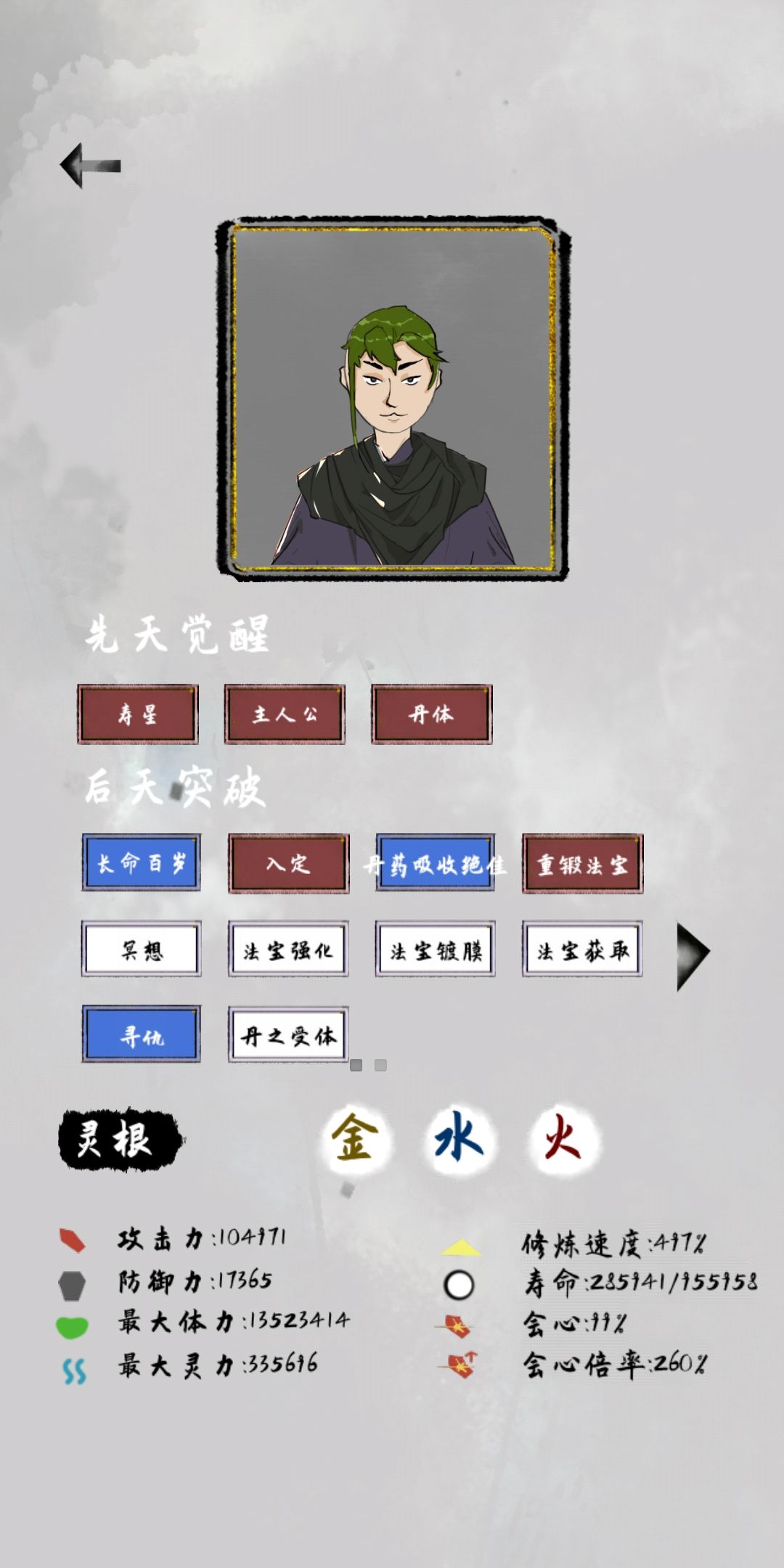 丹体和寿星保证前期寿命长和属性高,前期打的是召唤流,后期转换思路,多个召唤物当前排抗伤害,然后搭配近战法宝贴脸输出