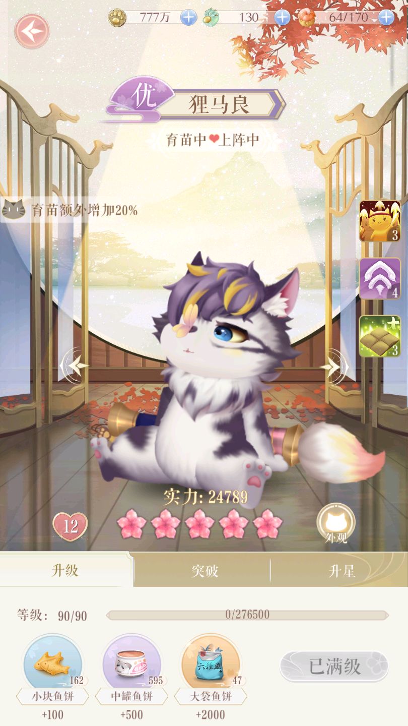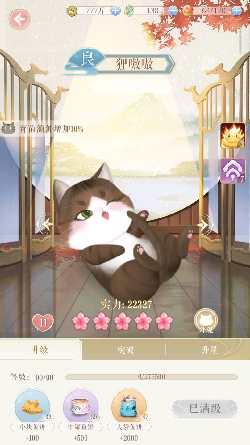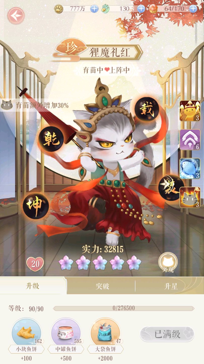 满级珍优良猫面板,加上暂时最高配猫战力,可以参考一下,