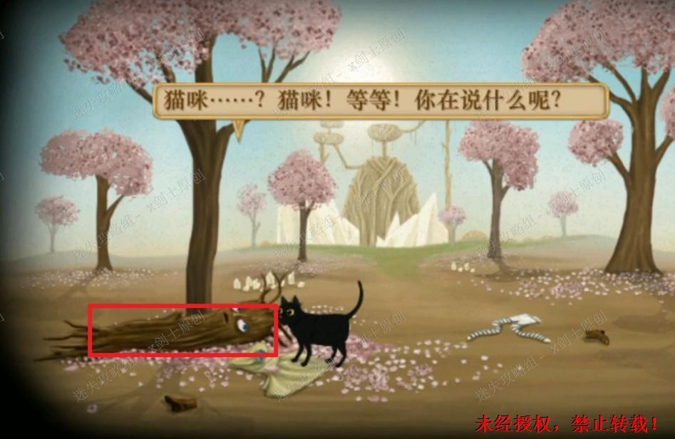 63.上一章节结尾弗兰掉下悬崖之后,这个时候我们的操作视角切换成了小猫,点击已经变成树的弗兰。63