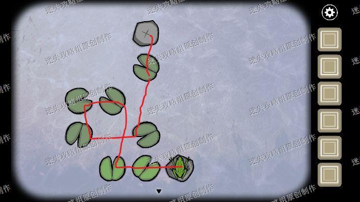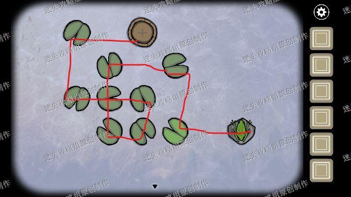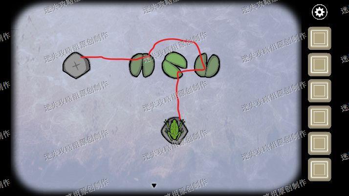 13.第二灾我们向右看到水面上有青蛙,如图跳跃,完成之后我们会得到第一只青蛙,接着
