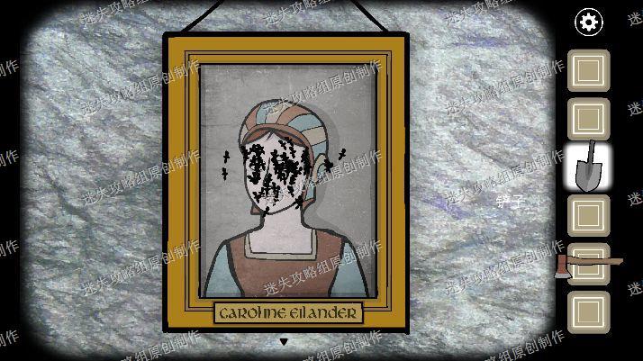 33.虫子会把画像弄下来,我们在背后拿到了黑色方块,回到锈湖中心把黑色方块放入吊饰进入下一关。