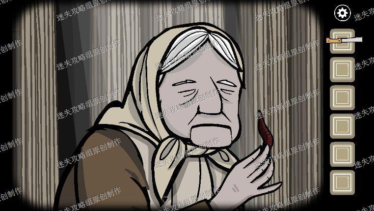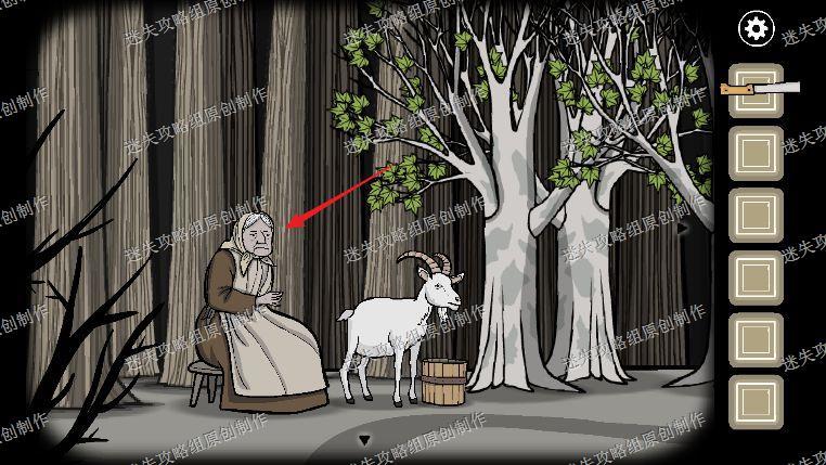 5.我们进入天堂岛内部之后,在不远处发现了一个老奶奶(原来这是主角的奶奶)和一只山羊,点击老奶奶鼻子我们找到了一个水蛭(其实觉得这里在隐喻什么,水蛭也许代表了某些东西)