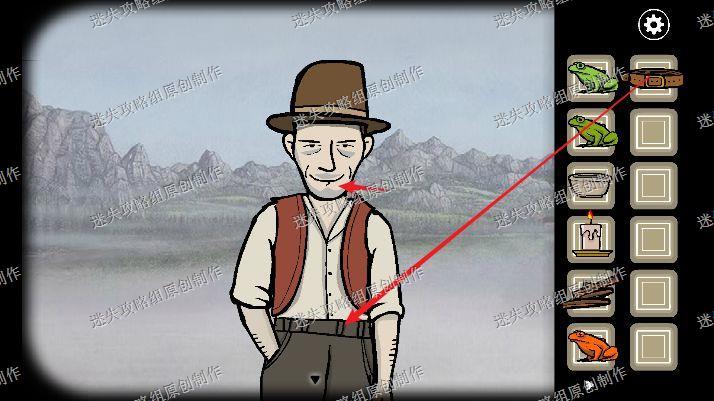 18.我们到一开始上天堂岛的门口,把皮带给左边站在石头的男人,点击一下他的嘴巴拿到第四只青蛙。