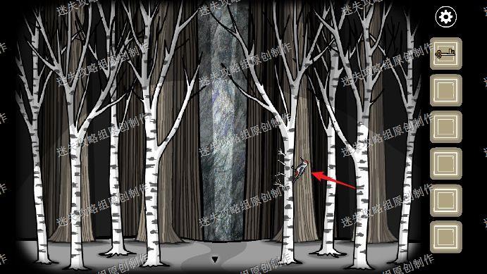 84.从地下室出去,我们在森林深处看到有一只啄木鸟,我们按左边树枝的数量排序1234,完成后拿到了一块白桦树皮。