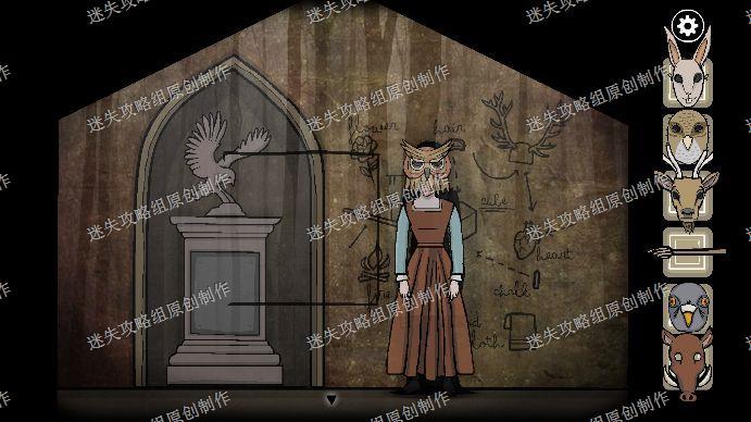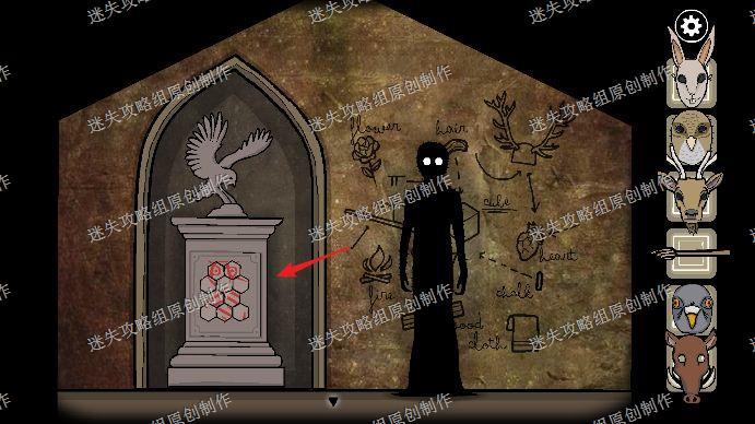 108.来到下一个鹿头雕塑,开始游戏,点击下方按钮,顺序为右左右左左右右右右右,拿到鹿头面具,下一个鸽子貂鼠,顺序为向右4左3右3左3右1左1右1.
