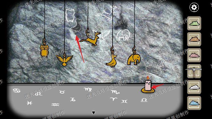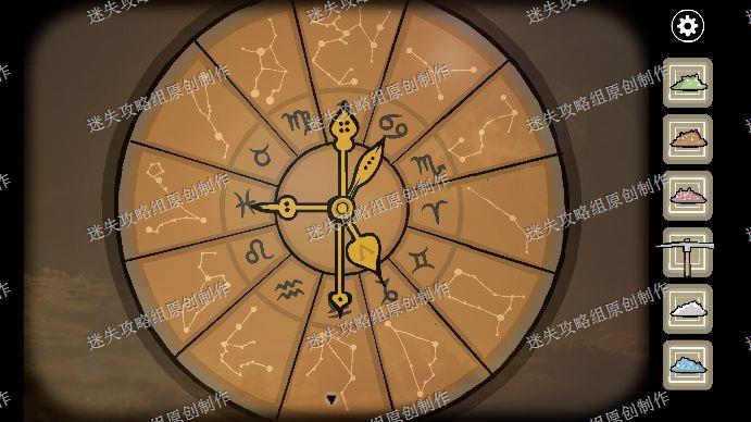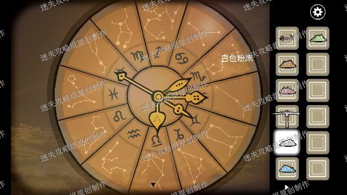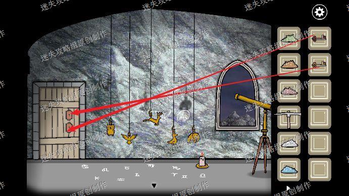 91.我们再进入地下室,往梯子上爬,到二楼,移动蜡烛,让影子和墙上的画对应,星座依次是天蝎、双鱼、双子、射手、摩羯,回到一楼的转盘调整一下