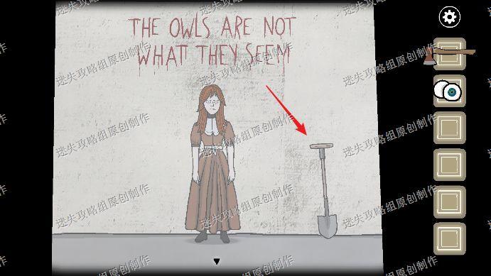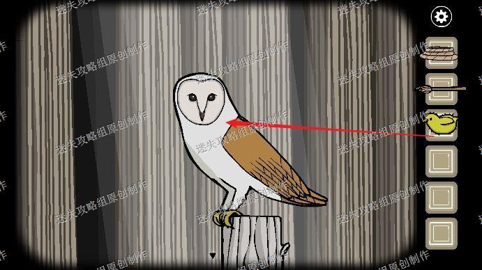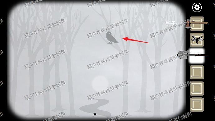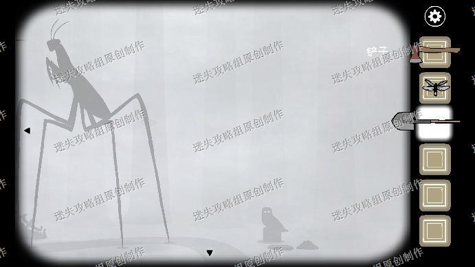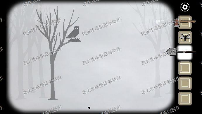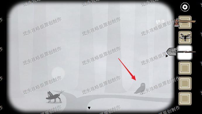 78.在左侧的森林中看到一只猫头鹰,点它一下就会飞走,第二次在蟋蟀右边,再点击一下飞走,第三次在小屋房顶,再点击一下它又会飞走,第四次在我们挖到的箱子上,第五次又在左侧森林的树枝上,把萤火虫给猫头鹰喂下,会招来巨大螳螂。