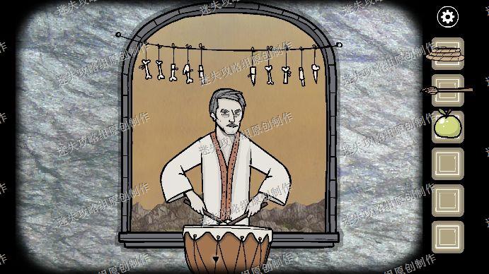 73.在左边看到三个人在演奏歌曲,我们从中间开始,顺序是:中右左右中右中左右左中左中,结束以后我们还要点三个人按规律完成演奏,分别是:131311333313,用这个打开右边盒子,拿到一把斧子