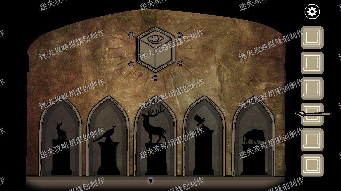 109.最后一个野猪雕塑,我们点击的顺序为右1左1右2左1一直到右6左1就可以完成了,拿到野猪面具,完成后点击上方,进入另一个密室,点击左边的猫头鹰,完成拼图后拿到黑色方块。