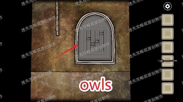 103.到猫头鹰那里,把小鸡给它吃,获得鸡骨头,用鸡骨头拼出OWLS,完成之后我们去到大门口。