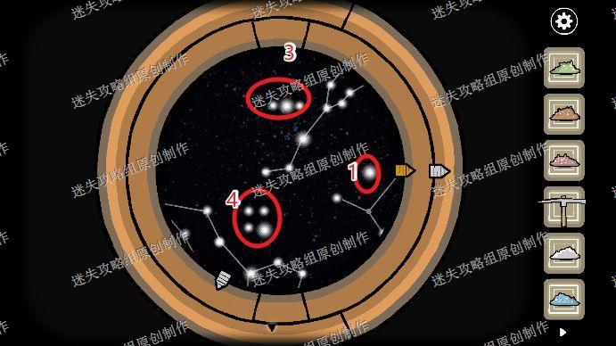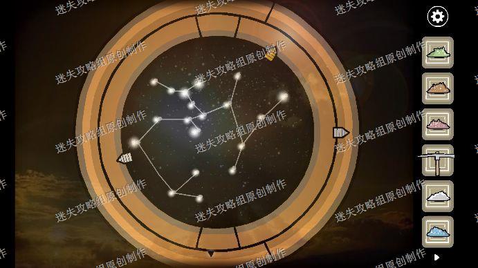 92.如图调整好了后获得第三把金钥匙,我们回到二楼,使用望远镜,把镜子中的星星对应星座调整好。