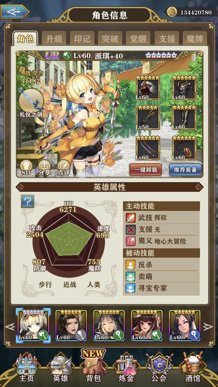 2.新增SP角色[ 派琪 ][ 凯丽 ][ 恩尼迪克 ][ 白星 ][ 蒂拉 ][ 玛菲利娅 ][ 斑鸠 ][ 蜜雪莉雅 ][ 罗莎 ] ,名称专属颜色为紫色,SP角色使用前提是6星60级满觉醒(190颗觉醒石) 突破尽量高配(MAX 40破),