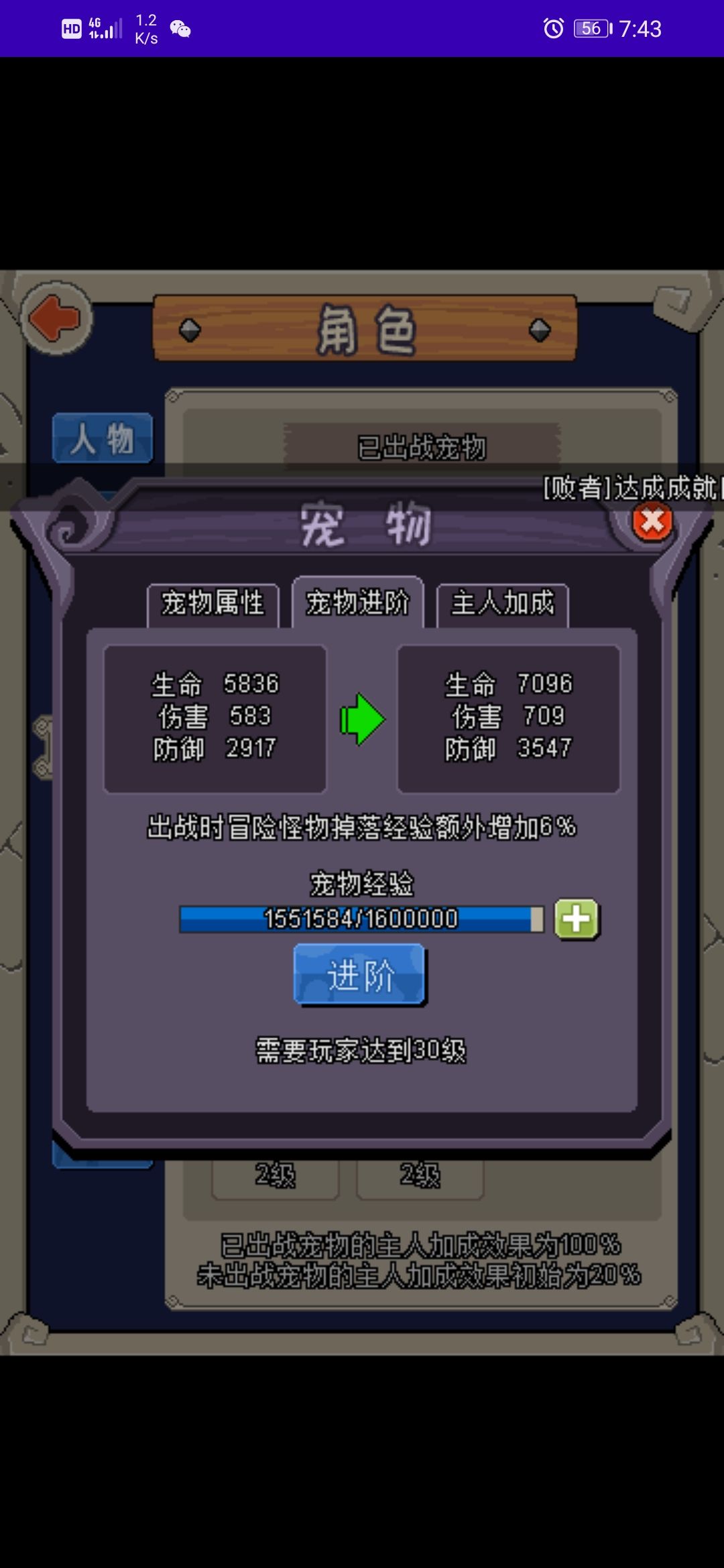 2.每天进图第一广告送的是双倍经验 这个可以用你的扫荡卷子 把经验加成吃满 推荐 先刷图看能不能再遇到个地图buf运气好了就是 图里buf双倍+吃药双倍+广告双倍 ps:就算没遇到双倍buf 也记得先刷图卡最后2分钟扫荡 3.宠物龙人怪会给经验加成是百分比的 还有其他宠物也加不过是橙色的
