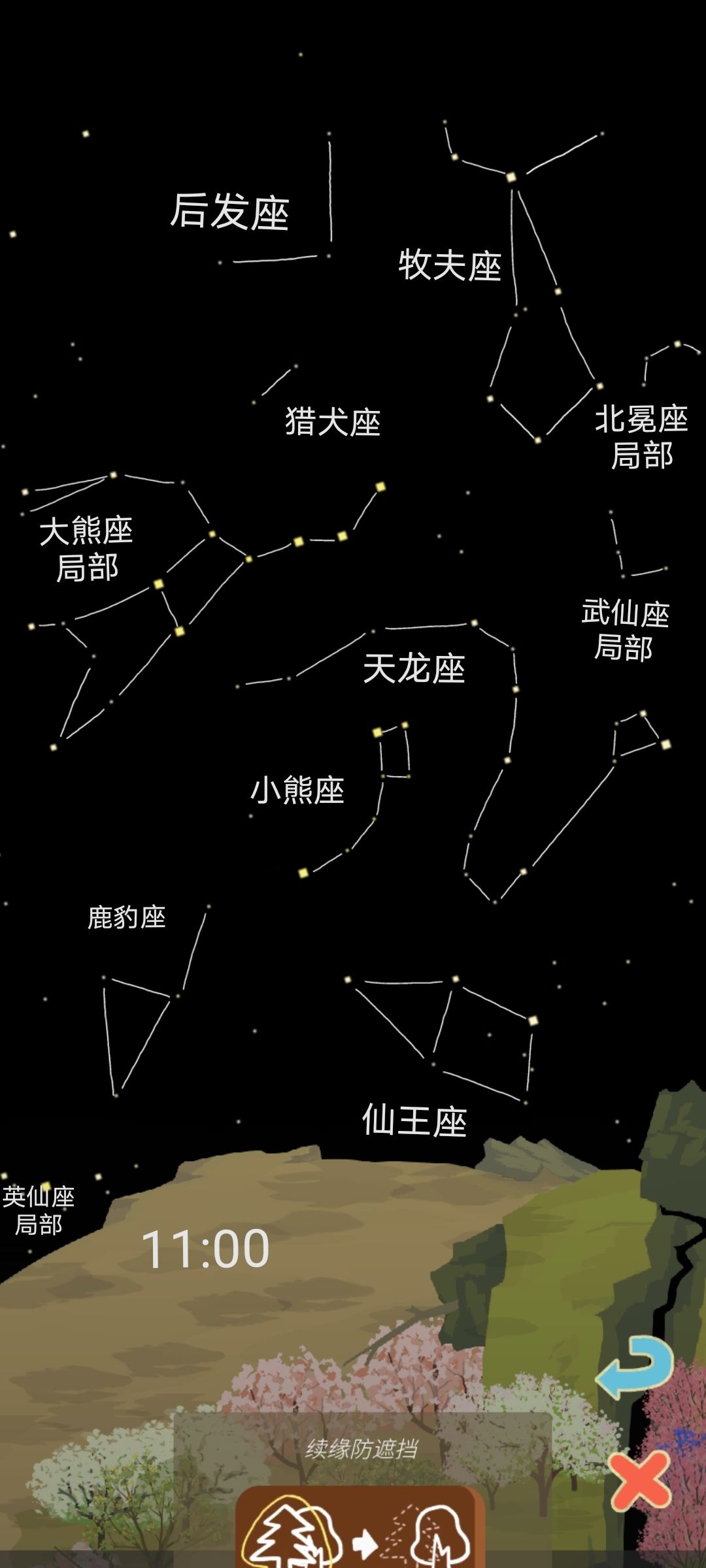晚11:00能收集到的完整星座有:小熊座、鹿豹座、仙王座、天龙座、猎犬座、后发座和牧夫座共计7个星座。