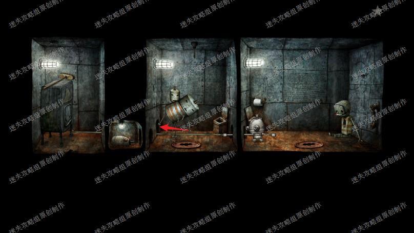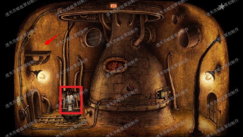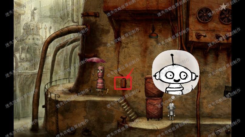 1.点击上方的浴缸,点击他的身体后组成一个机器人,和机械老鼠交谈,我们得知老鼠想要布娃娃来交换没我们按住机器人的身体拉长他,来拿到他头顶上的洋娃娃,给到老鼠,我们就可以走路了。