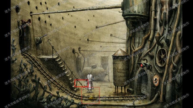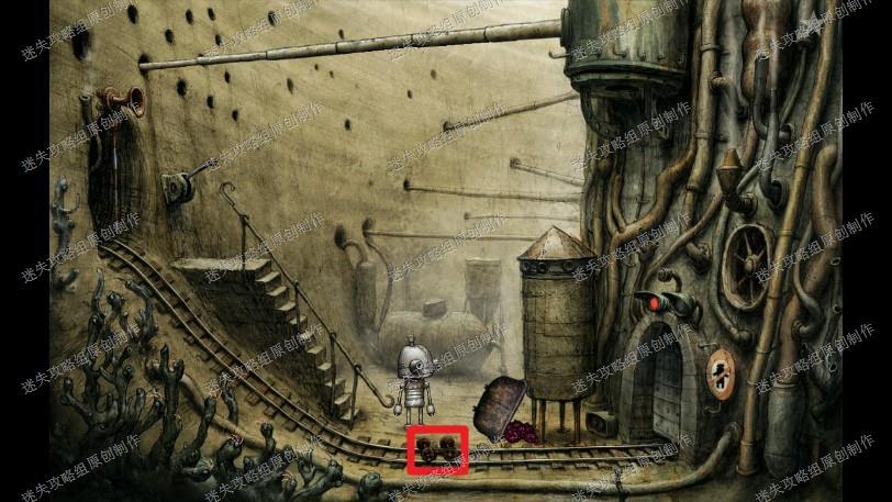 15.下去之后从新到右边开开关,跳上矿车,这时候爪子会把你送到最右边,点击爬进管道过关进入下一关,看准时机跳入管道。