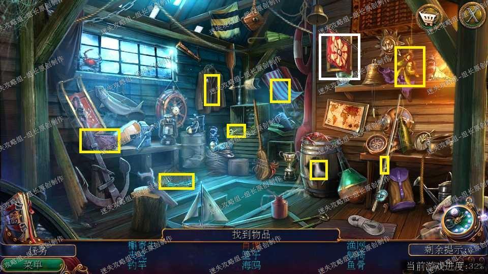 80、与店长对话,得到盐块。盐块使用碎冰锤得到碎了的盐块。前往港口,进入仓库完成小游戏。小游戏解法如下,完成后可以得到罗盘,小游戏中白框直接获得,黄框点击后背后获得。80