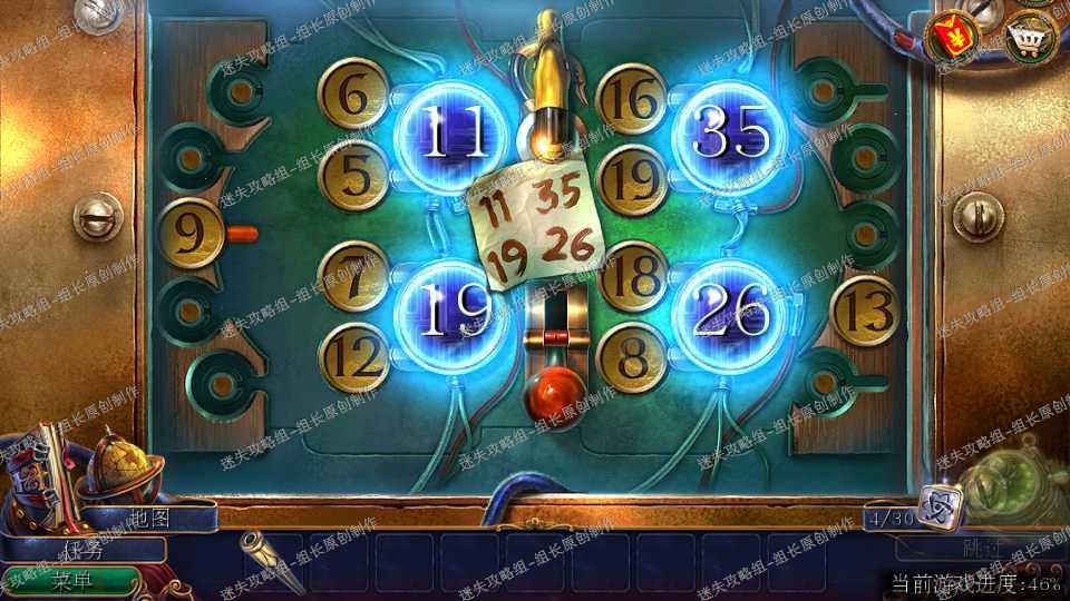 46、小游戏解法如下。依照顺序点击即可,得到自动开锁器。46