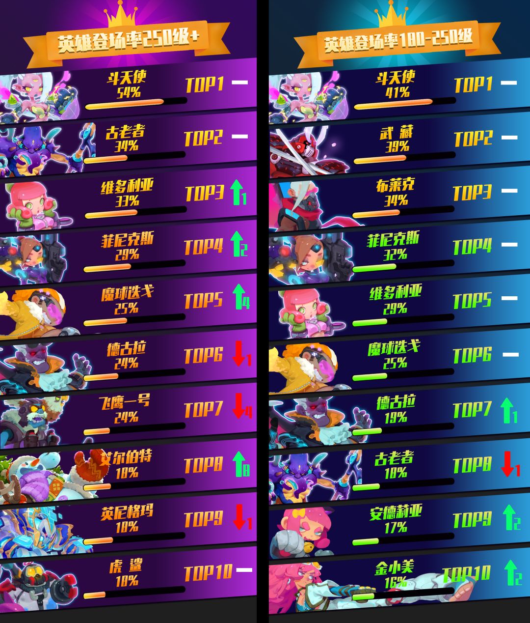 250级英雄登场率