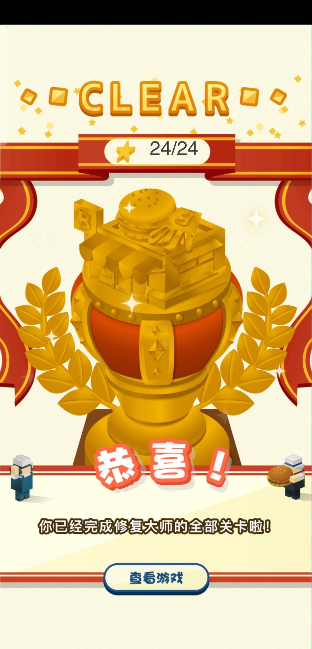 现在,我通关啦!游戏很好玩,希望以后还能玩到这样的游戏!