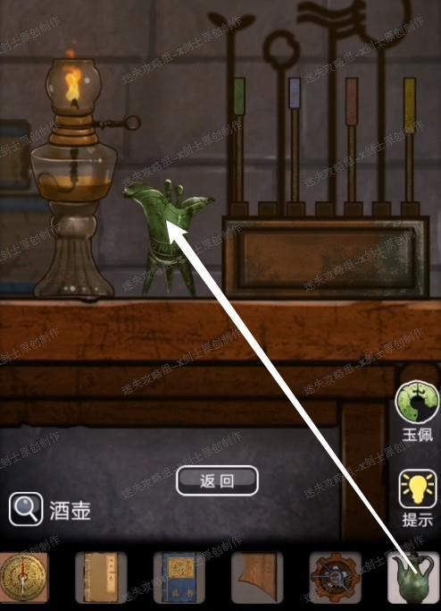 6、在下方点击拿到齿轮还有酒壶,接着向右一个场景,点击屏风87.1