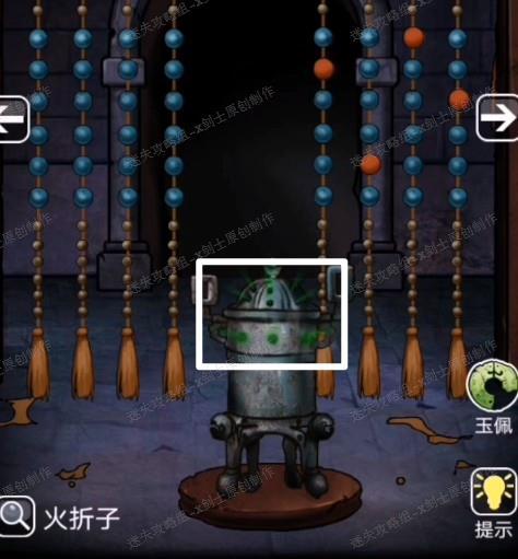 23、点燃之后火折子上面就会出现一团烟,点击这个烟这个烟就会飞走,他一直飞,一直点击它,他会飞进香炉里面。104