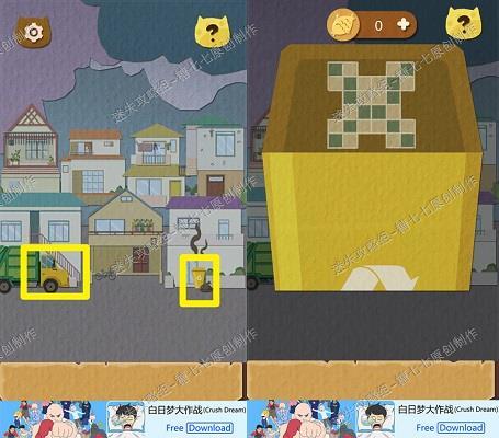 7、 查看右边垃圾桶上面的提示,然后点击左边的货车,摆成提示的样子,方法很多,这里给大家提供一个便捷的方法。7/71