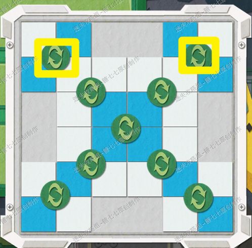 ❷然后点击中间的四个按钮分别一次,把蓝色的方块转动中间四个,对角四个。73