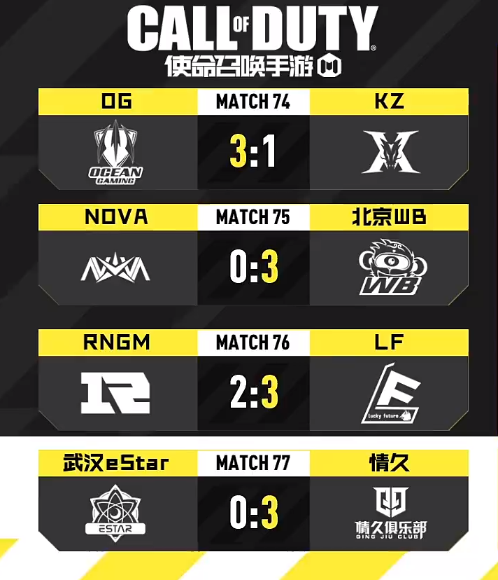 至此,5月9日的比赛已经结束,八支战队的表现让我们看到了非常多精彩的细节。LF让二追三战胜RNGM的精彩操作,坑神开局霰弹枪豪取八杀的操作秀翻全场,情久OG也战胜了超级大黑马KZ积分再进一步,5月13日17:00,使命召唤大师赛常规赛第七周第一日精彩赛事即将打响,作为常规赛最后一周,各战队会有哪些精彩表现呢?让我们一起拭目以待吧!