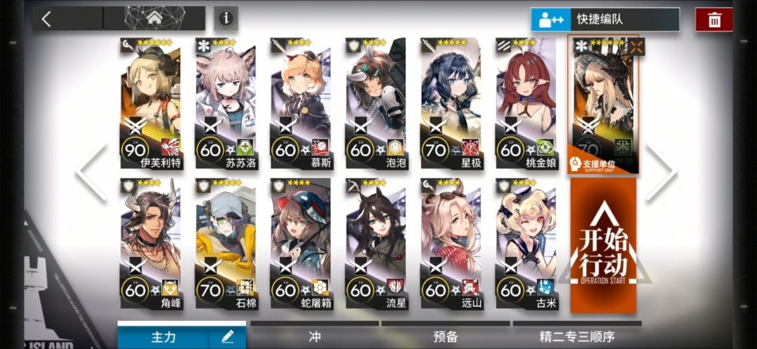 这里注意:群奶带的的精一满级的调香师,狙击干员是精一满级技能能等级7的流星,可以让流星在没有奶妈支援的情况下单刷第一轮飞机。