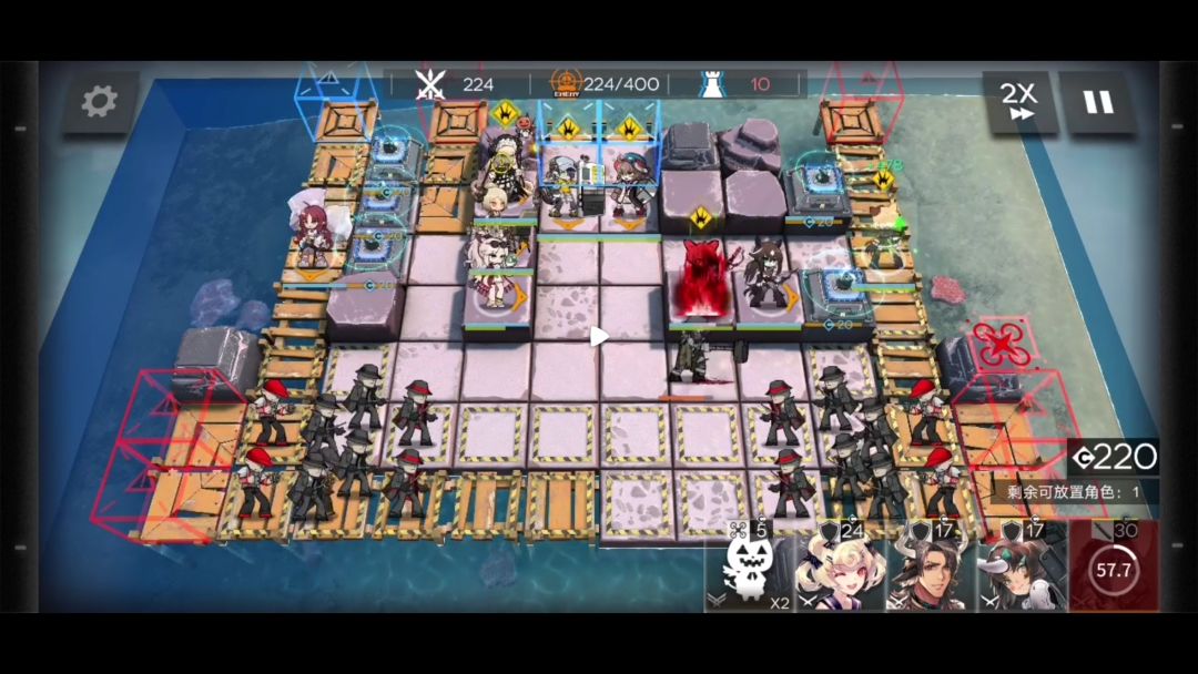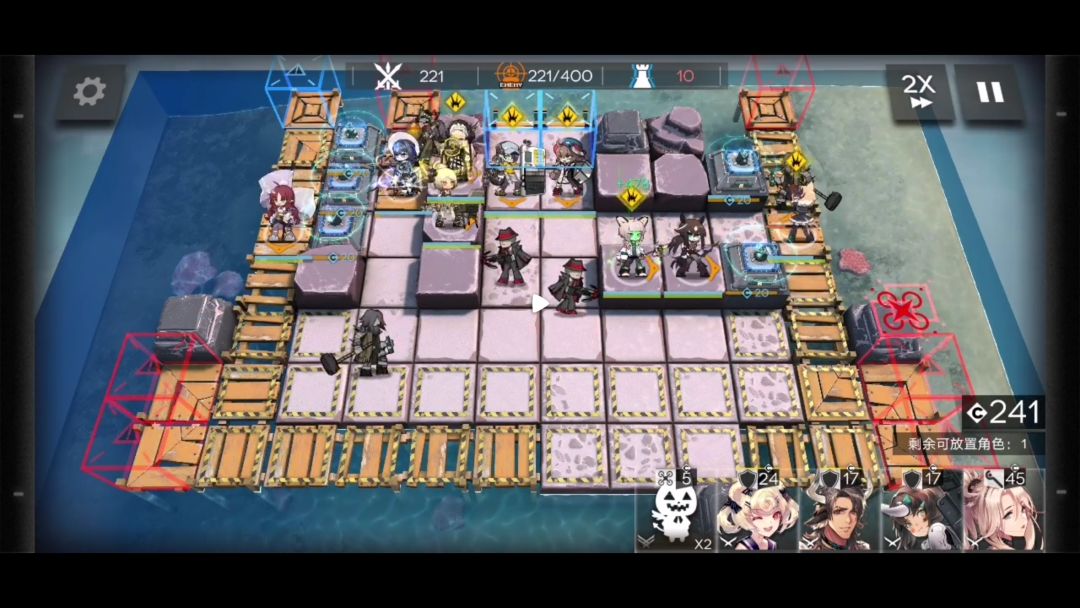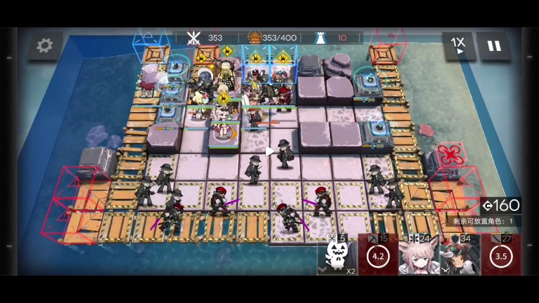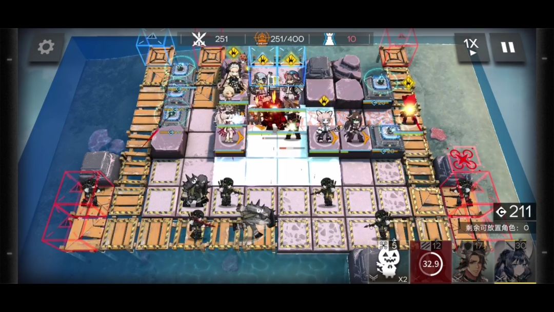 再次部署重装拦截欺凌者,部署奶妈以及吃眩晕箭的近卫