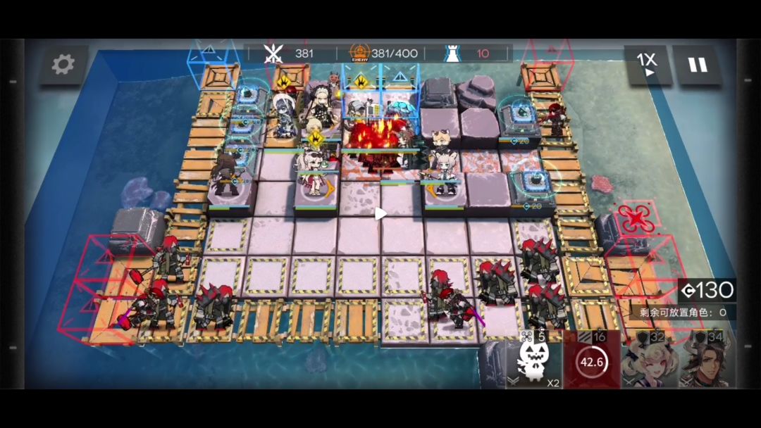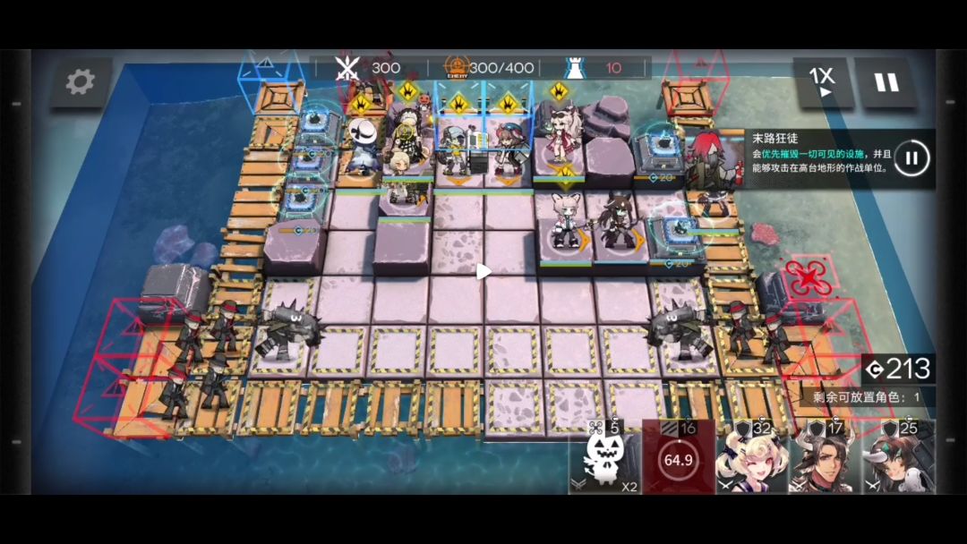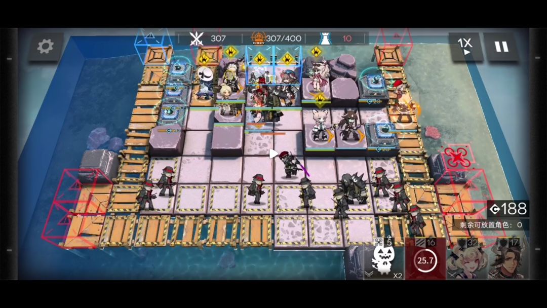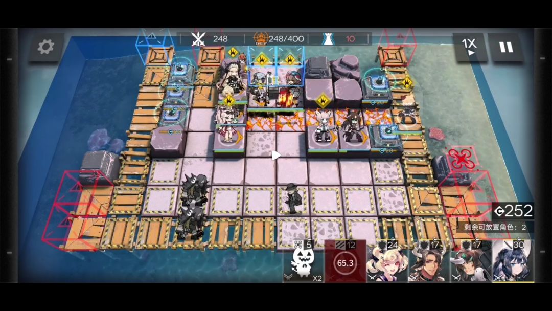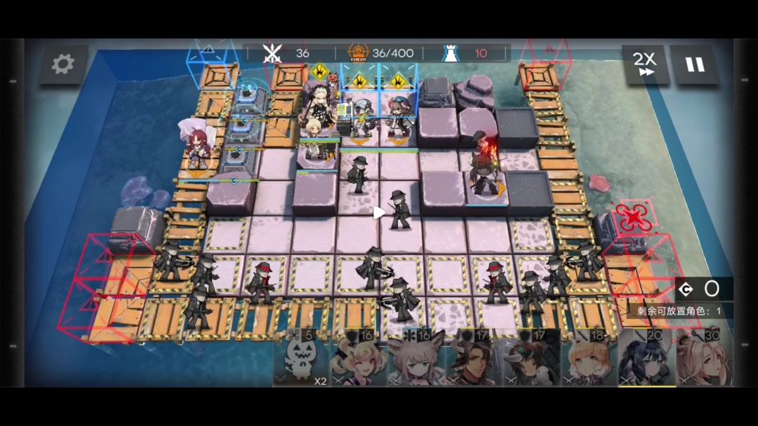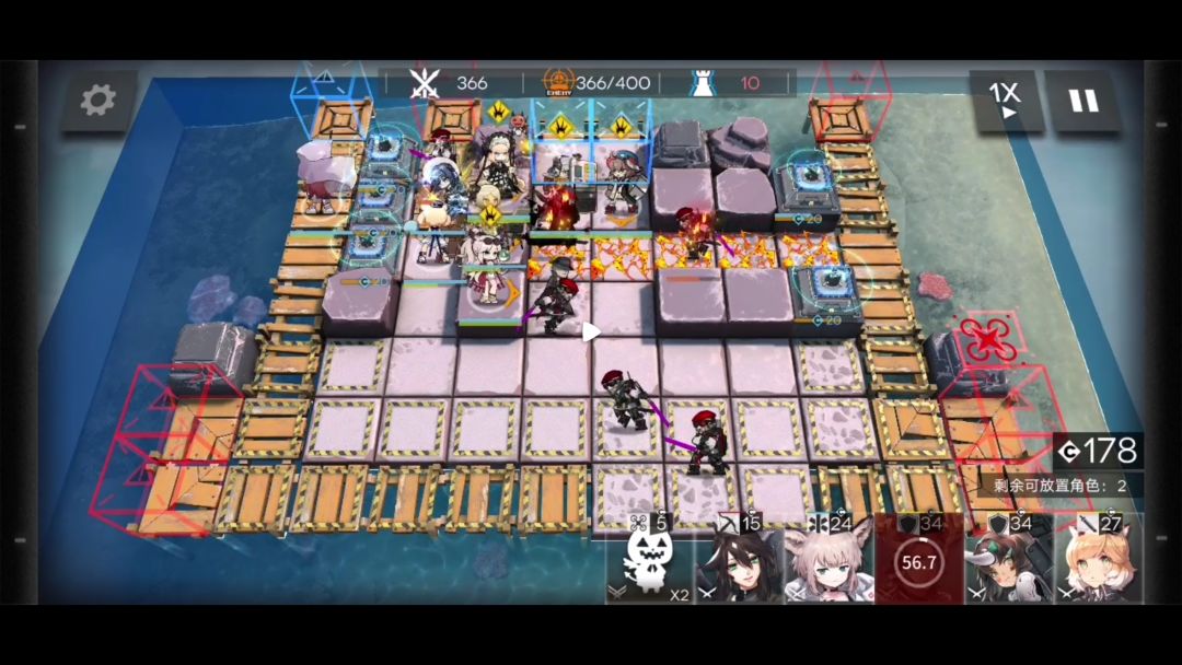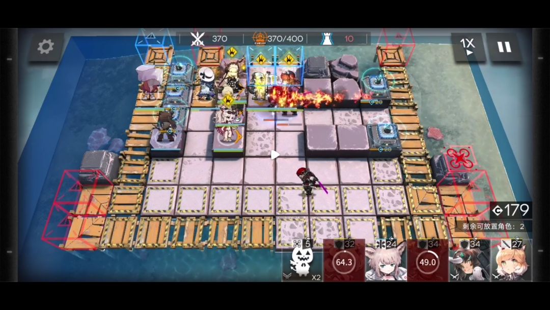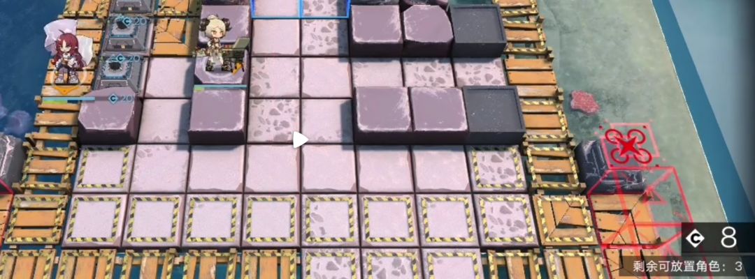 如果队伍里只有精一技能等级7级的桃金娘这一个先锋。开启左上两个指挥终端后就要部署狙击干员。