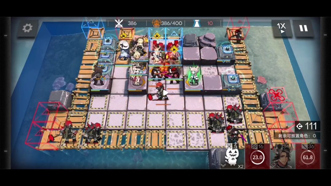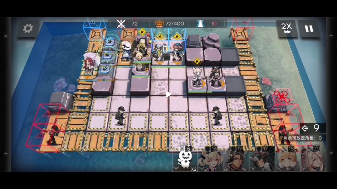 右侧俩人撤退,部署角峰。此时场上有9人,不会再有新的敌人。