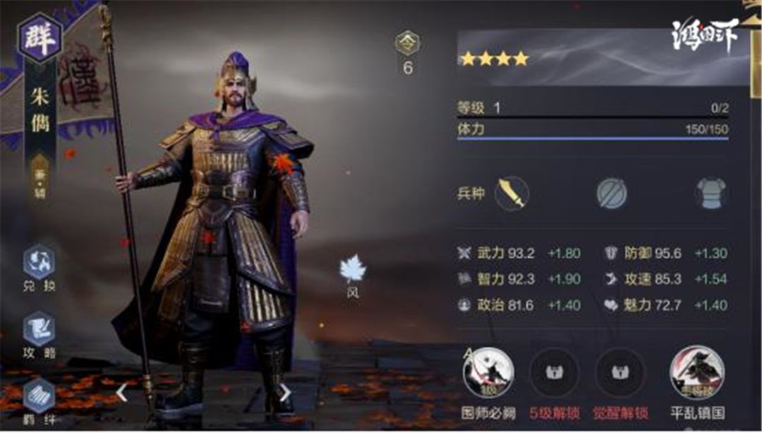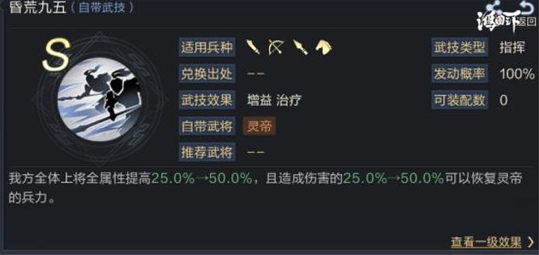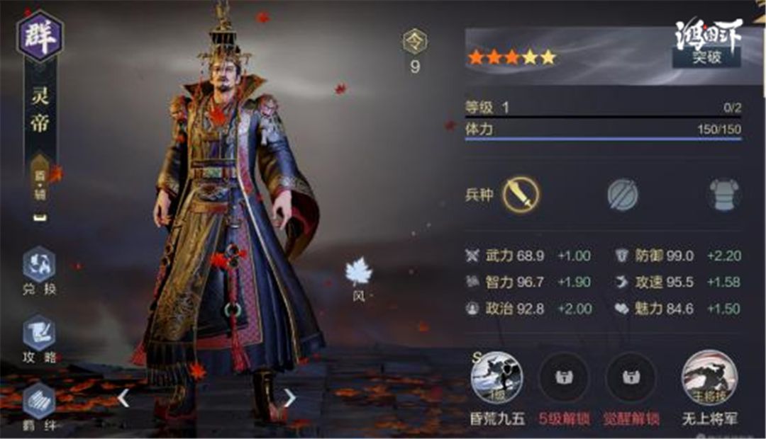 优点一:灵帝的指挥技能昏荒九五,能够提升平民四星武将属性值不足的缺点,大大的拉近了和五星武将的属性成长差距。