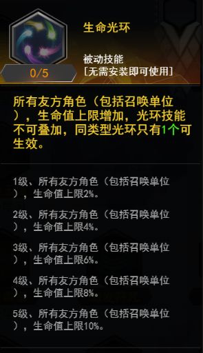 下面来说的就是神射手(傀儡)的光环技能,这个是疗伤光环,可以为所有友方角色和召唤兽提供生命恢复效果增强,光环技能不能叠加(同样的光环只能存在一个),可输出可奶。(所有光环都是被动技能)