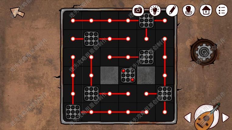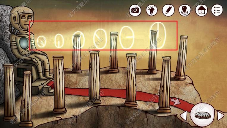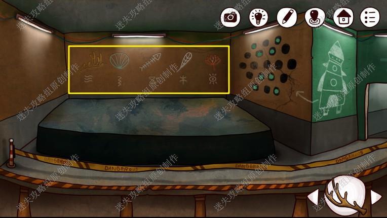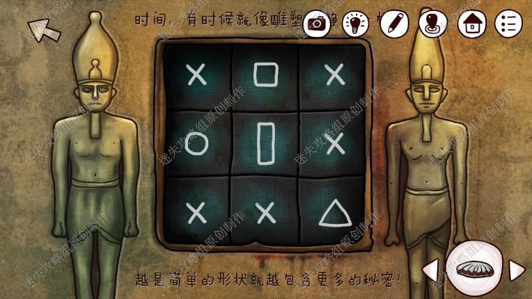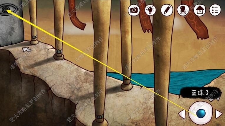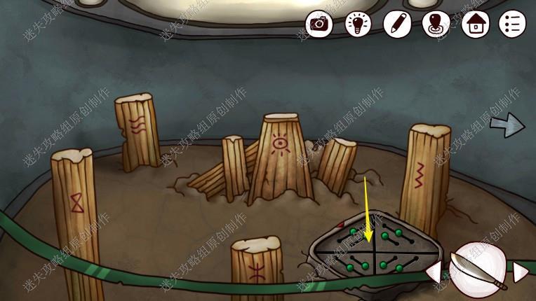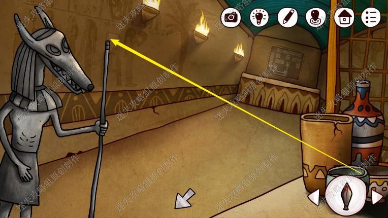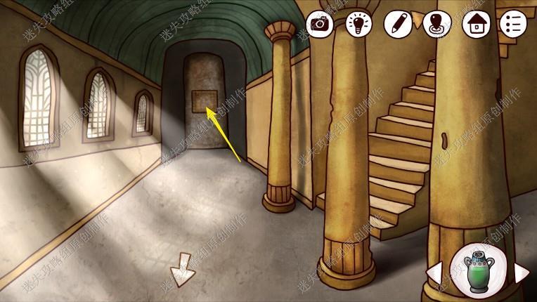 24. 接下来我们回到一楼,点击长廊尽头,完成游戏(图案与箭头相同的对应起来,先调整如图位置步骤在图上),进入石室。