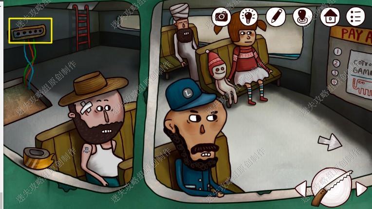 9. 来到码头后发现船来了,我们在船顶看到1975的数字和游戏名称,进入船舱和他们每个人对话,得到线索1.楼上有条鱼需要鱼饵喂食2.上次船长为女孩举办派对,时间为3:42(解开码头密码门的线索)在窗台上拿到胶带。