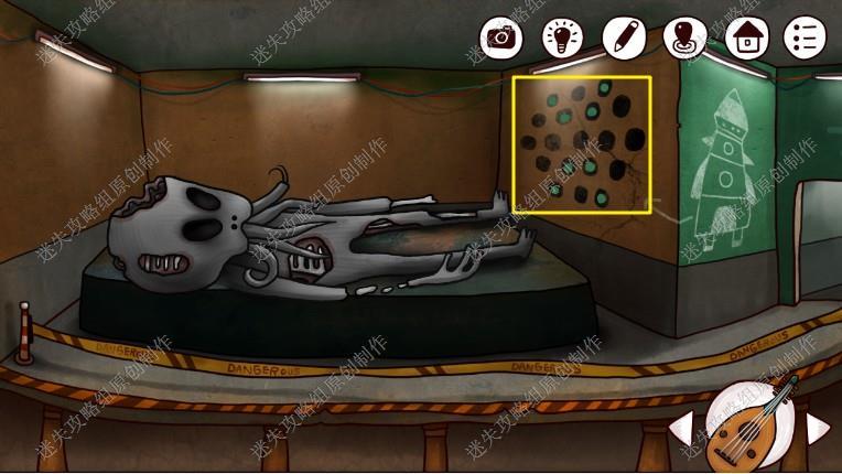 16. 进入09房间后我们发现地上有一块石板,根据之前在公寓里的黑板上线索,排列组合打开,拿到鲁特琴,回到研究人员那里。