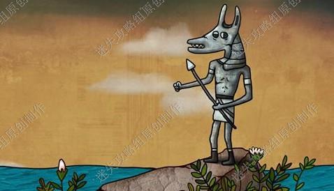23. 公主身后的石门使用蓝色石块打开,进入后我们发现阿努比斯石雕的矛没有头,把矛头按上,从嘴里拿到蓝珠子,接着我们点击右边桌上的陶罐,多点几次就会碎裂,获得一块石饼,把之前的拼图碎块放到尽头墙上,完成拼图(应该每个人不一样),拿到绿色药水。