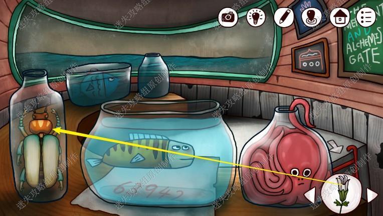10. 来都楼上把在灯塔拿到鱼饵给虎皮鱼吃,获得密码63942.回到楼下,利用刚刚获得密码打开楼下的门。