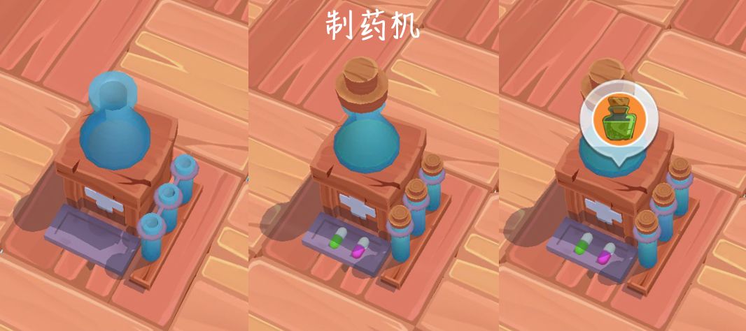 制药机:消耗草药、灵芝等药材,生产创可贴和药膏,要小心鲨鱼的攻击哦!