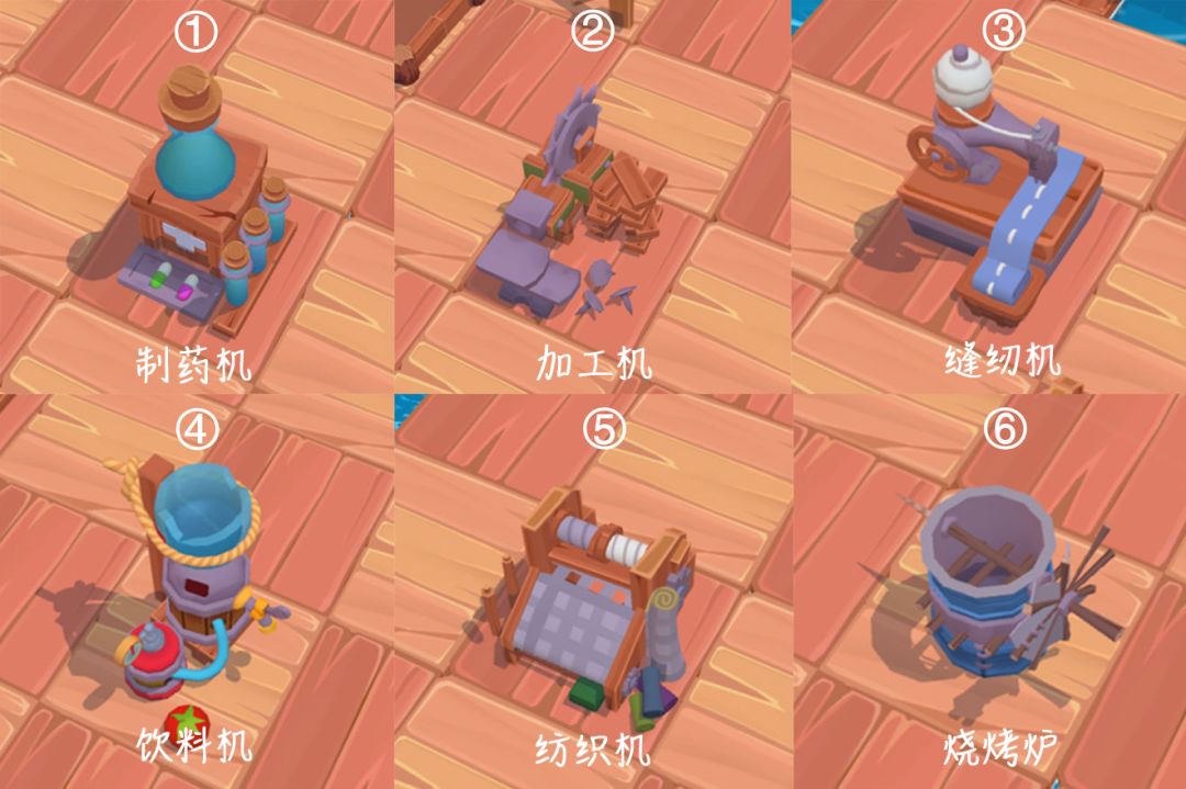 在吃饱喝足之外,海上求生之旅也需要一些特殊工具,因此生产道具的加工机和生产药品的制药机也是必不可少的。