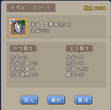 在所有的装备词条当中,除开经验,金币两个掉落词条,剩下的属性词条,建议优先洗出攻速以及回复,尤其是回复点,40阶的尉阶装备的回复属性已经堪比两个属性点加的回复数值了。这个是其他装备属性词条没有办法比拟的。