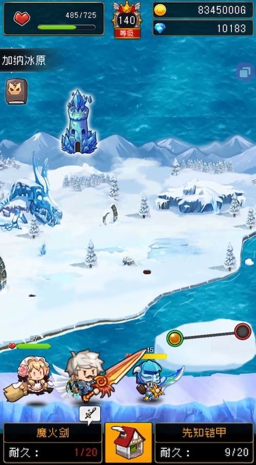 5个大冒险地图分别为:迷茫森林,鬼哭荒漠,加纳冰原,咆哮魔山,终焉之岛。