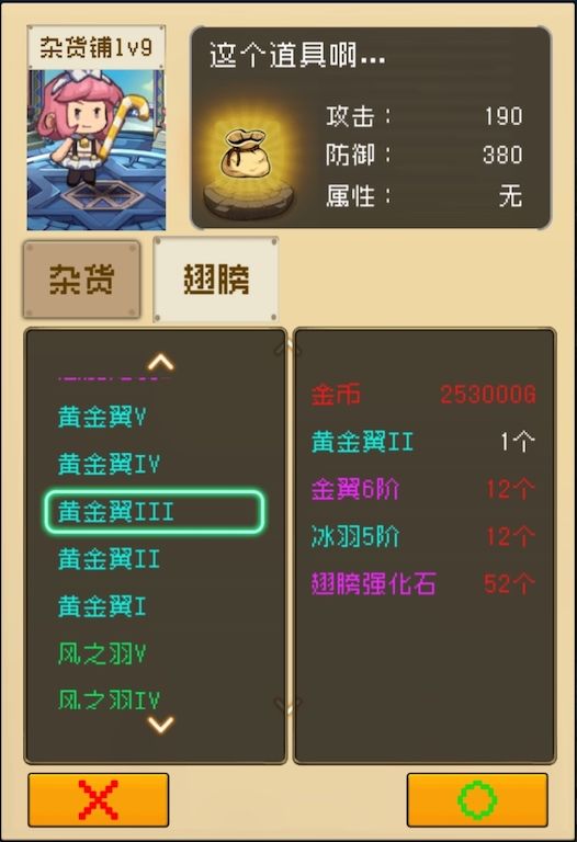 7、新增杂货铺等级,增加翅膀制作栏,增加杂货铺的货品种类。