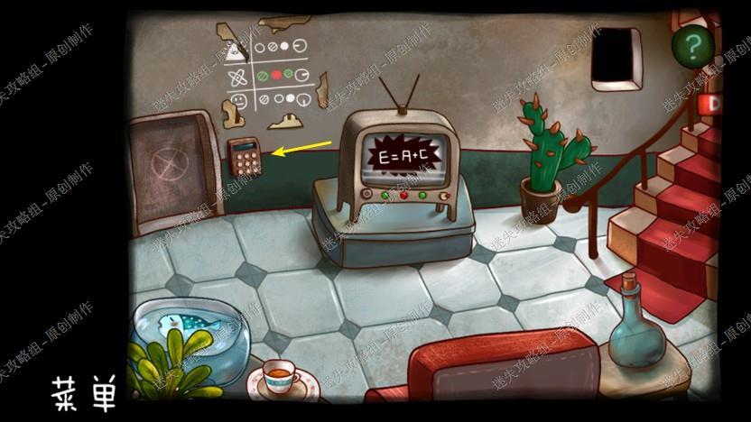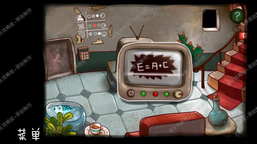 6. 去到客厅打开电视机,调整成如图模样,看到线索E=A+C,回到机器人那里,墙上A对应5、B对应3、C对应16,AEB=A、A+C、B=5、21、3,我们得到线索5.21.3